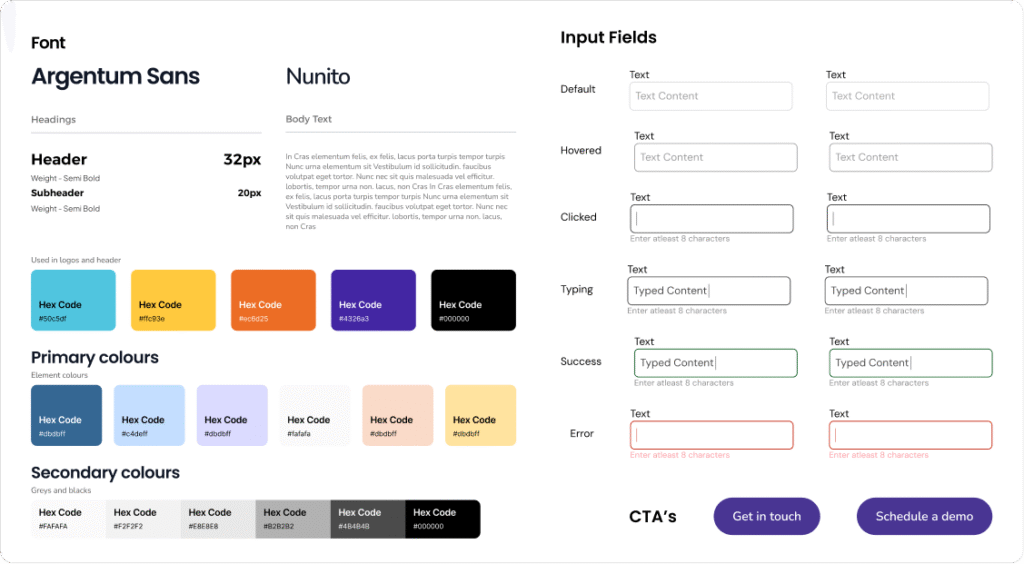 Developing a cohesive style guide to define typography, color palettes, UI components, and interaction states. This guide ensures visual consistency across the platform and streamlines the design-to-development process. It provides a scalable foundation for building new pages and features while maintaining a unified user experience