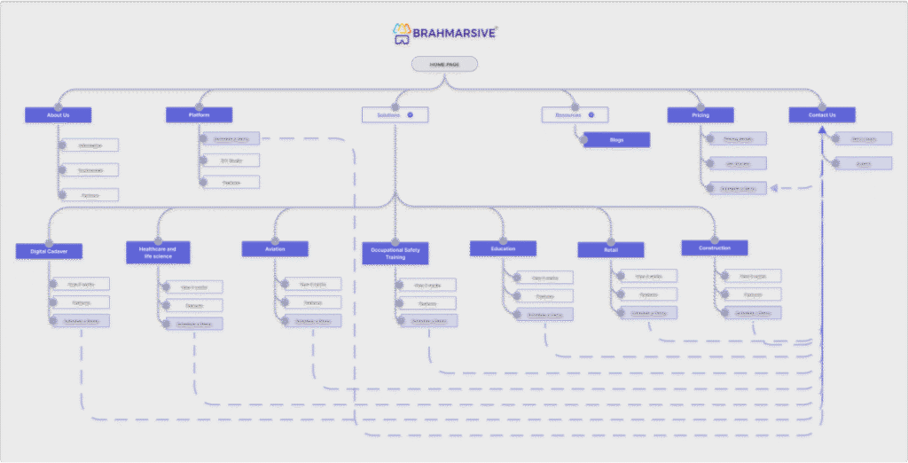 Developing a comprehensive site map to define the platform’s structure, ensuring logical and intuitive navigation for users. The process focused on organizing key sections such as business verticals, product features, demo scheduling, and contact flows to support a seamless user experience and drive conversions.